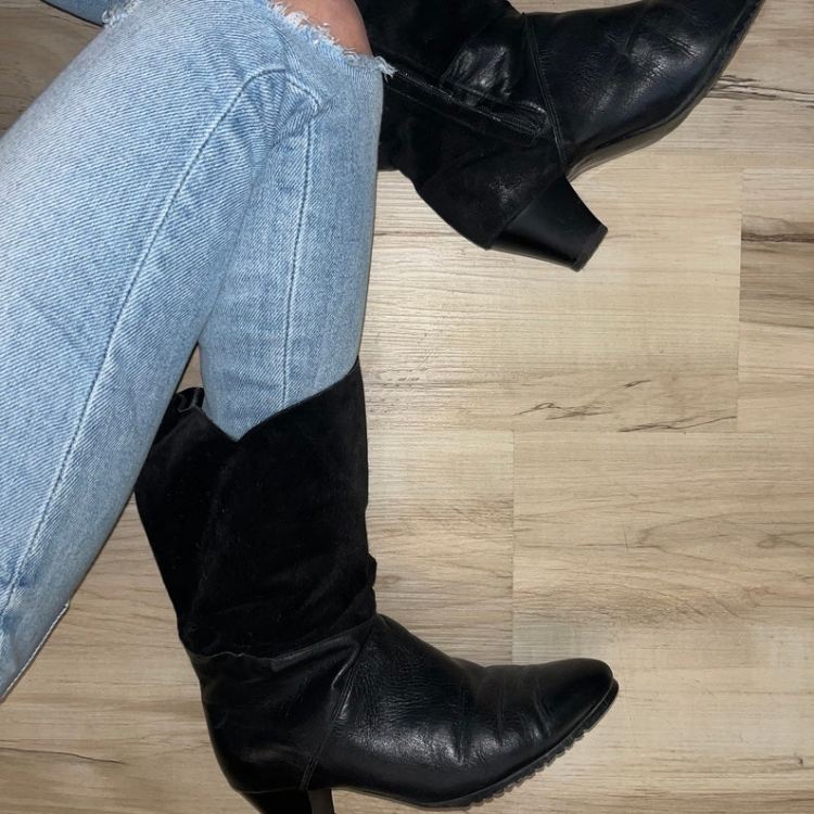 - Women's Y2k Vintage Black Leather Knee High Boots by Born Size | Save More