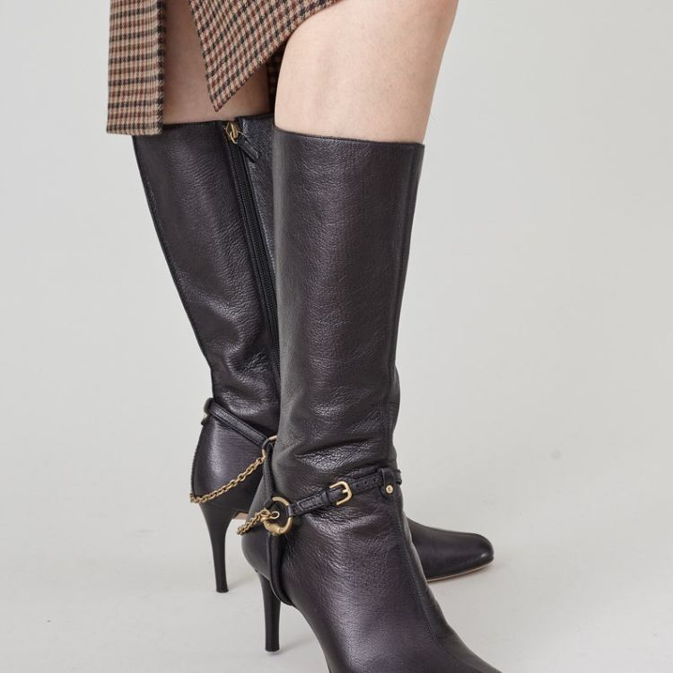 - Women's Y2k Vintage Black Leather Knee High Boots by Born Size | Save More