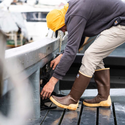 For over 60 years XTRATUF has been equipping commercial fishermen with Alaska proven footwear and boots. As fishing has evolved over the years so have fishermen's needs. We've continued to innovate and solve for how our boots can help our users stay safe, feel confident, and remain comfortable. Our iconic Legacy boot has been around since the late 50s and are being worn in more environments and for more reasons than ever before. We integrated modern technologies and design features into this classic and well proven style. The Legacy NXT features a brand new, form fitting last with expanded room in the calf and ankle, designed to fit our modern-day commercial fisherman. We have also added a dual density midsole for added underfoot cushioning for all day comfort. The NXT is 100% waterproof and is made with our signature triple dipping technique, which creates a seamless and flexible barrier that is highly resistant to many organic and inorganic acids, chemicals, and contaminants. Staying true to our Legacy DNA, the NXT comes with a non-marking, slip-resistant Chevron outsole that provides unparalleled traction on any surface in the most extreme conditions.