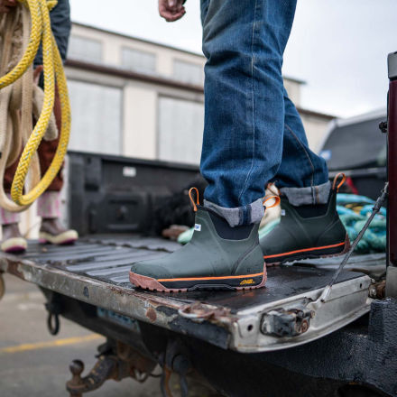 The ADB ICE was designed to work on wet ice while simultaneously being able to transition to other wet surfaces. This new boot features Glacier Trek Pro, our proprietary ice gripping compound paired with an SRC rated slip-resistant rubber. The ADB ICE has a lightweight rubber upper that is 100% waterproof and includes a faux shearling lining for quick drying comfort and warmth.