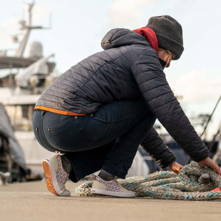 The Sharkbyte deck shoe is lightweight and versatile enough to wear on and off the boat. It features a durable water resistant canvas upper, rear pull tab for easy on, and a reinforced leather panel at the heel for easy off. They not only look and feel great, but also keep you safe and sure-footed, thanks to our signature non-marking, slip-resistant chevron outsole as featured on our iconic Legacy Boots.