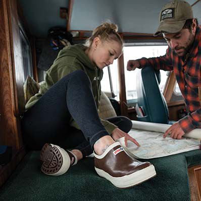 The Slip-On version of an Alaskan staple in the Commercial and Sport Fishing industry, these clogs will give you the flexible, all-day comfort that you love about our classic Legacy Boot with increased versatility for you to slip on and get to work. This Salmon Sisters version includes an interior Puffin print lining on the footbed.